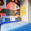 Il mix di colori e materiali, le linee optical renderanno il tuo soggiorno vintage, chic ma allo stesso contemporaneo! Con gli inserti in legno e gli inserti di parato optical l’ispirazione prende il largo!