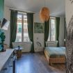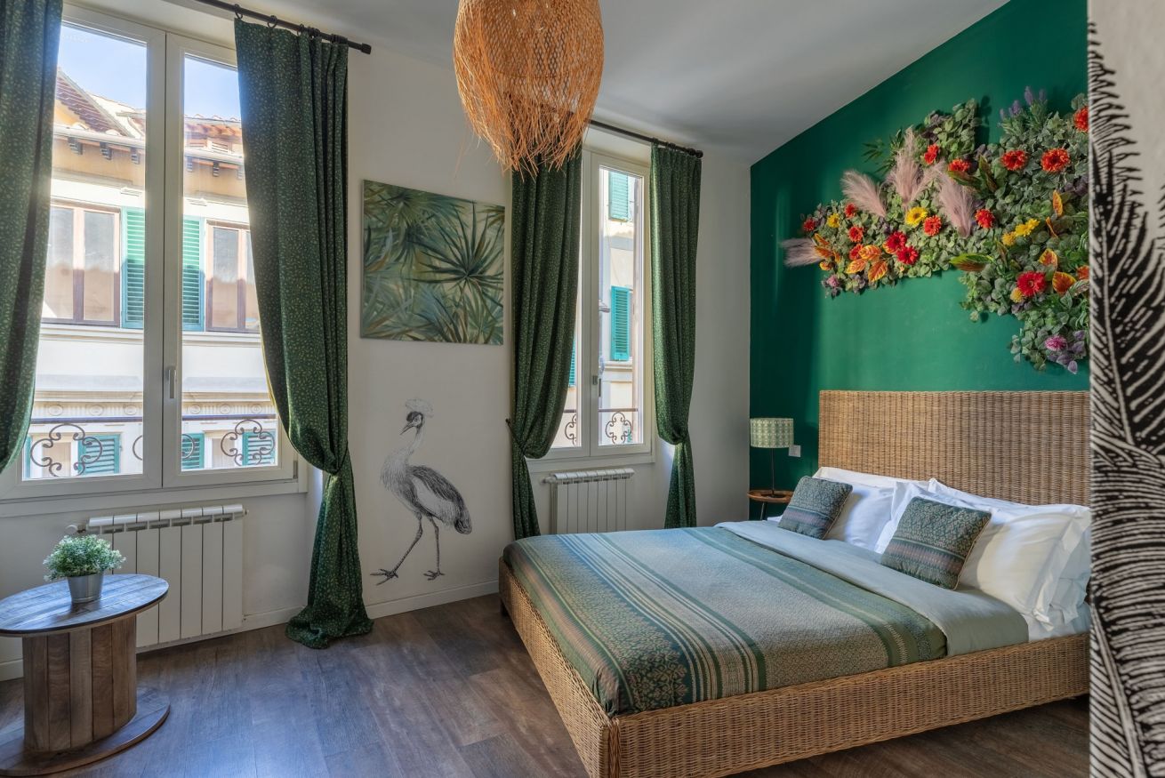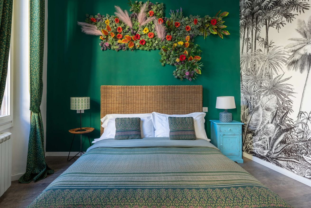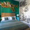 Decorazioni che oscillano tra modernità ed autenticità, pareti vegetali e tappezzerie che invitano a viaggiare e creano un’atmosfera informale di ispirazione tropicale. Mobili in vimini e una inconfondibile mescolanza di stili per un autentico effetto evasione completano la nostra camera in pieno stile urban jungle!