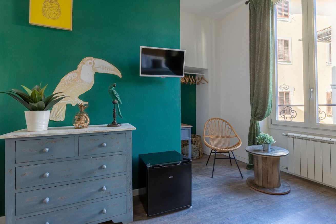 Il bagno in camera è impreziosito da piastrelle azulejos.